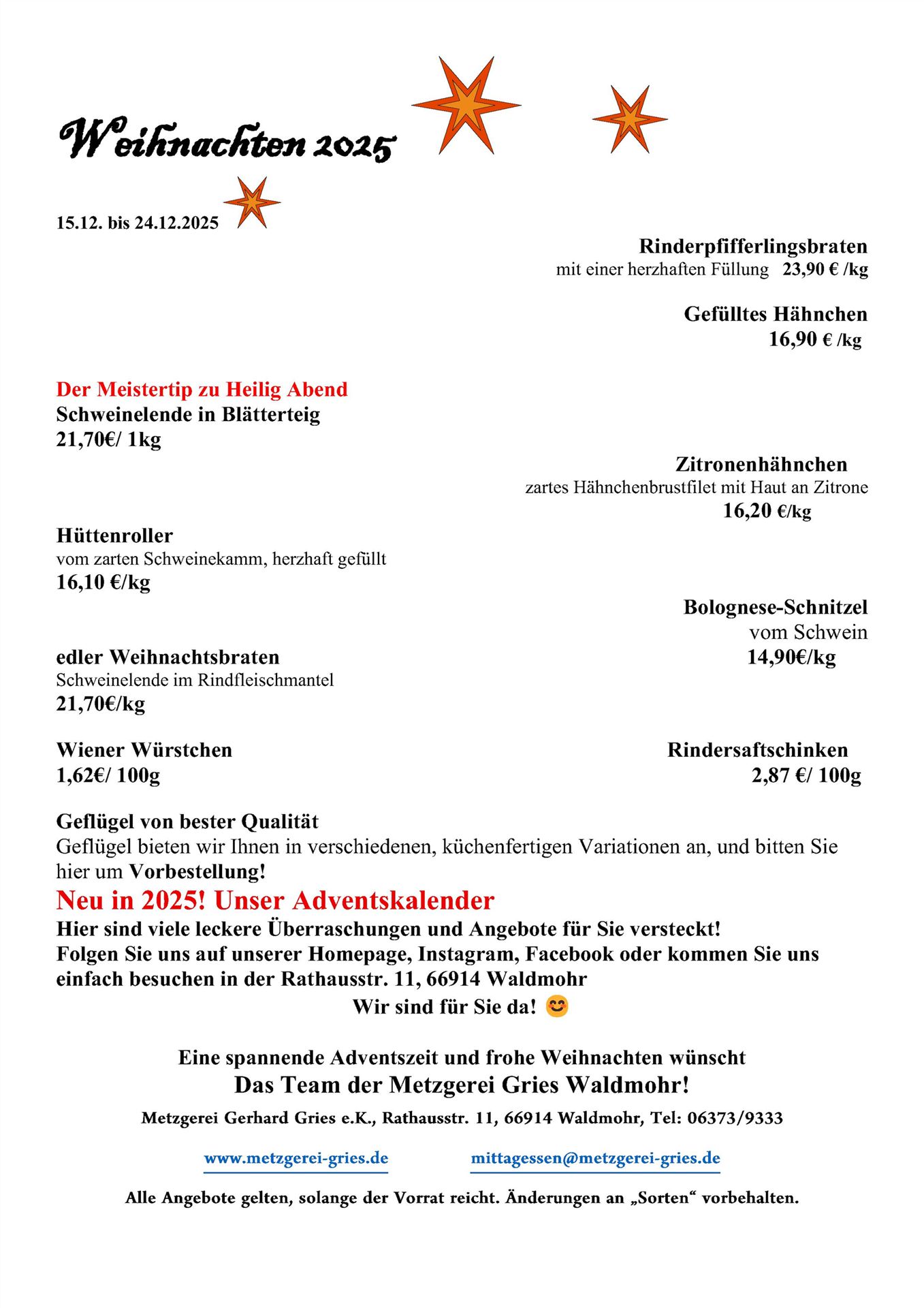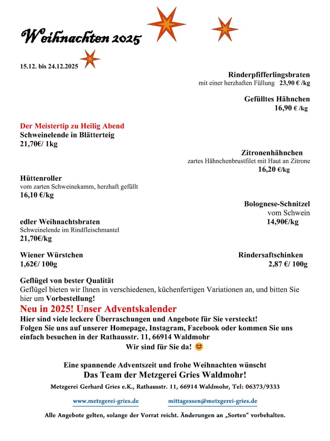 Rathausstraße 11 - 66914 Waldmohr Tel: 06373 - 9333 mittagessen@metzgerei-gries.de