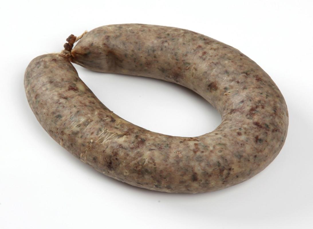 Zutaten: Schweinebauch, Schweineleber (10%), Zwiebel, Kochsalz, Gewürze, Kräuter (Majoran)
