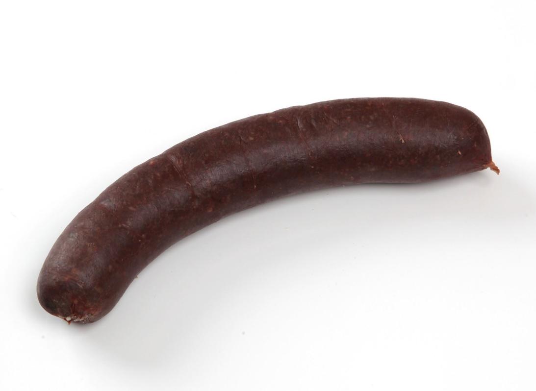 Die hausmacher Blutwurst ist aus schlachtfrischem Schweinefleisch und –blut gefertigt und mit ausgesuchten Naturgewürzen verfeine