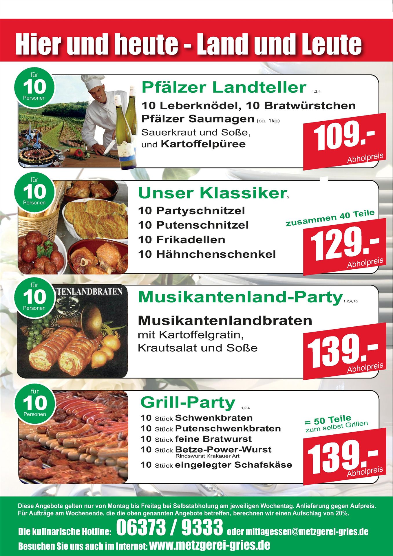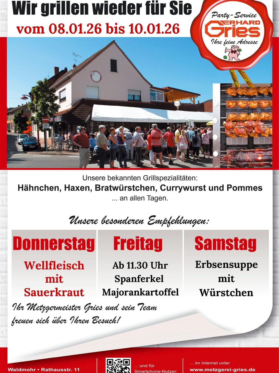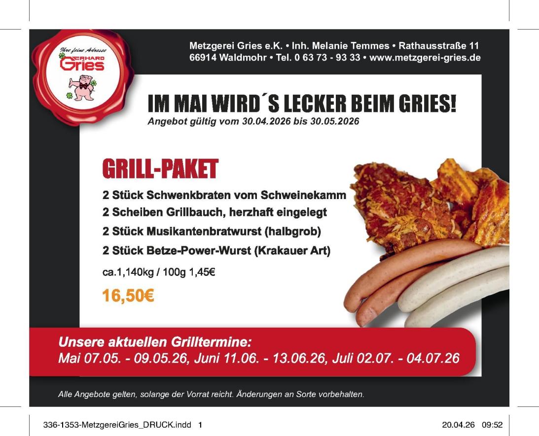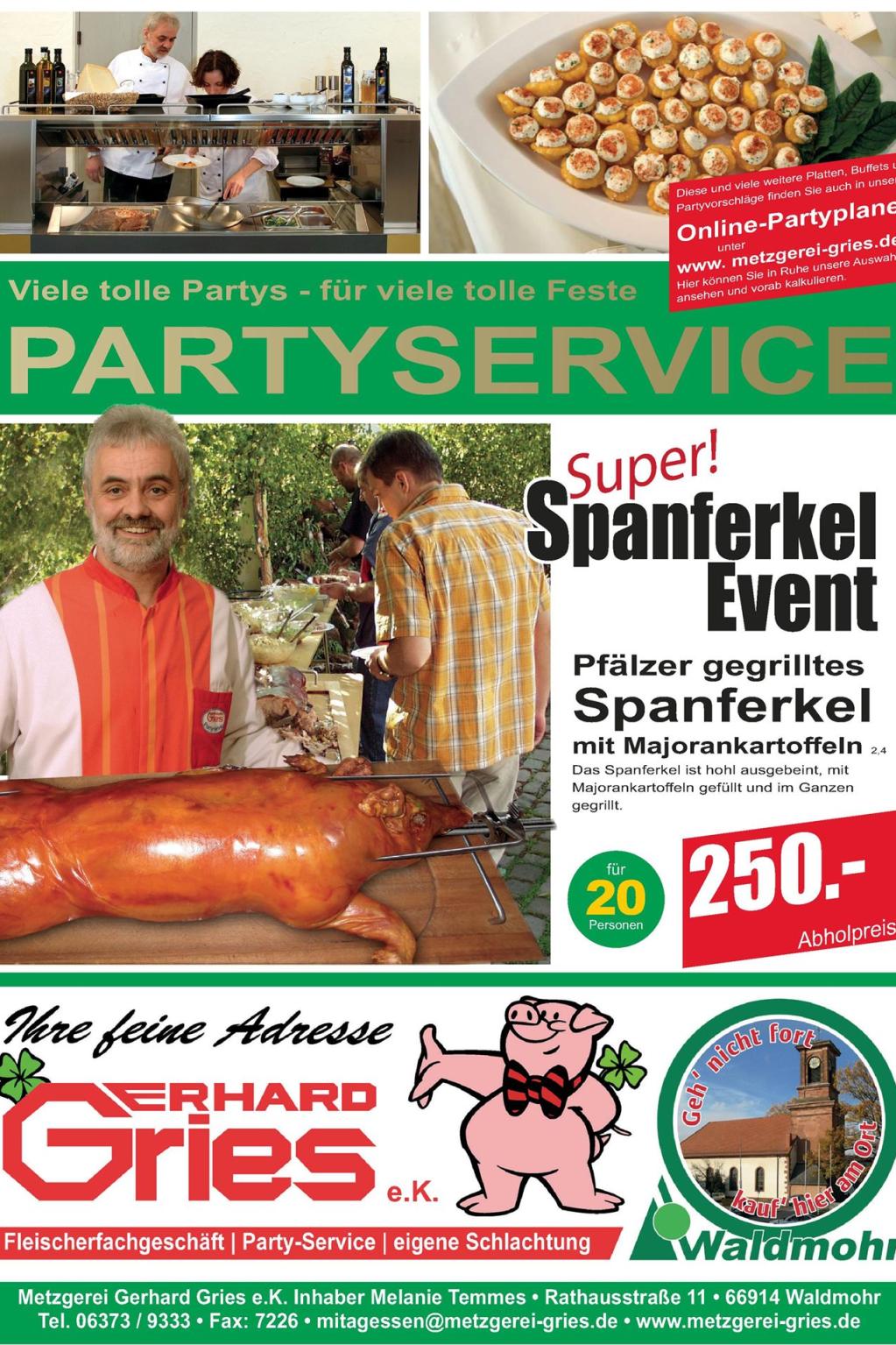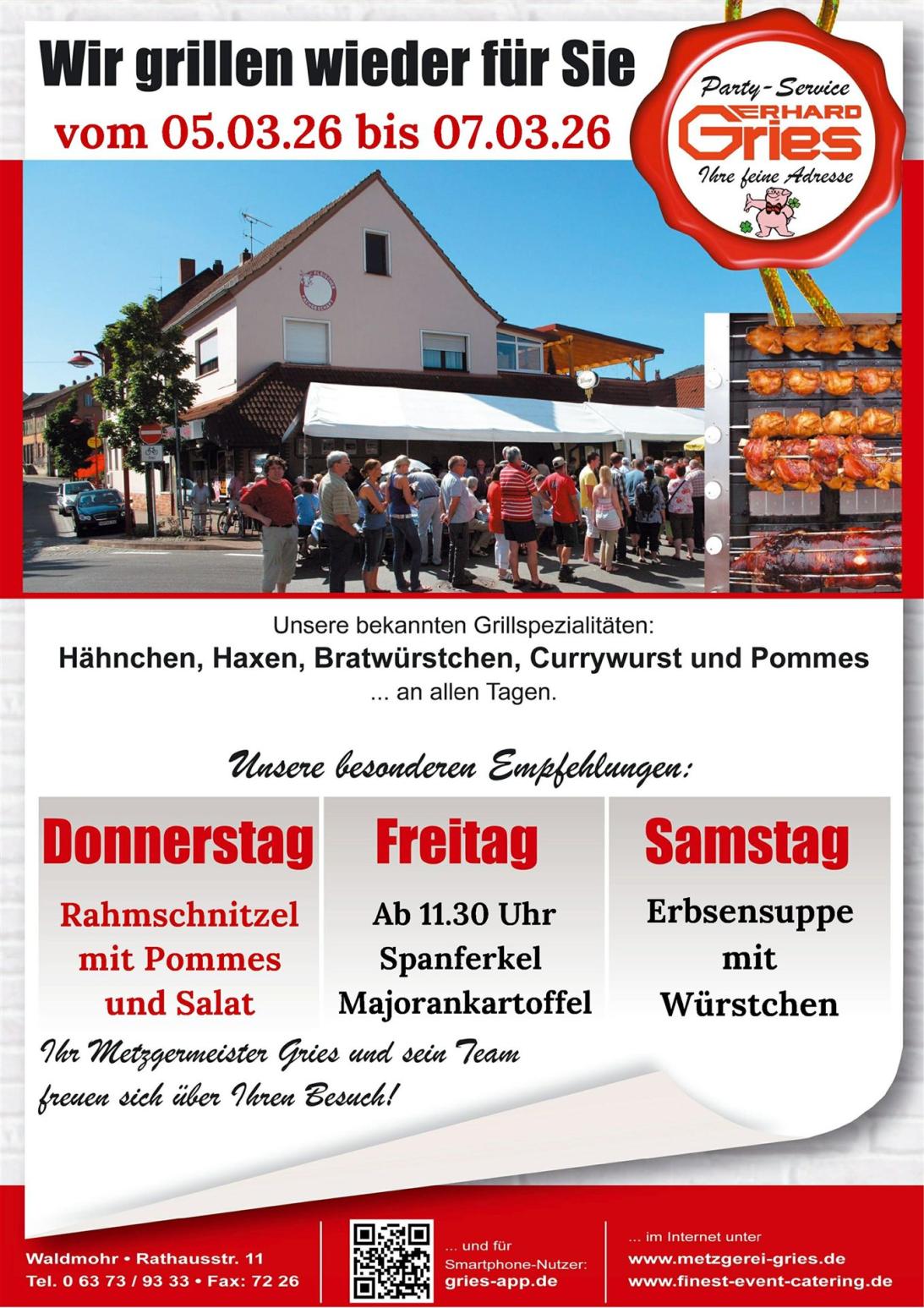 Rathausstraße 11 - 66914 Waldmohr Tel: 06373 - 9333 mittagessen@metzgerei-gries.de