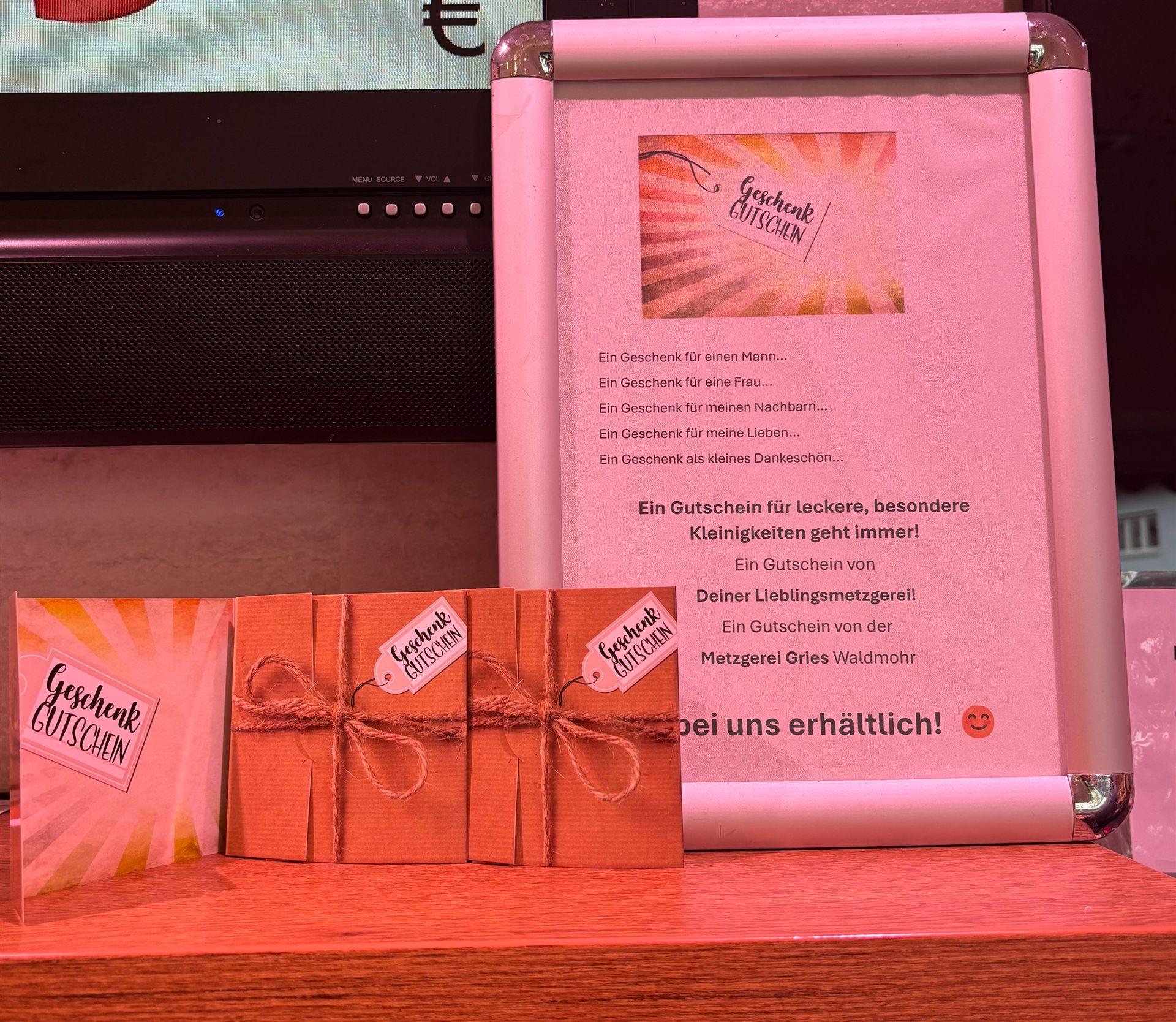 Verschenke doch mal etwas leckeres! Einen Geschenkgutschein von Deiner Lieblingsmetzgerei
