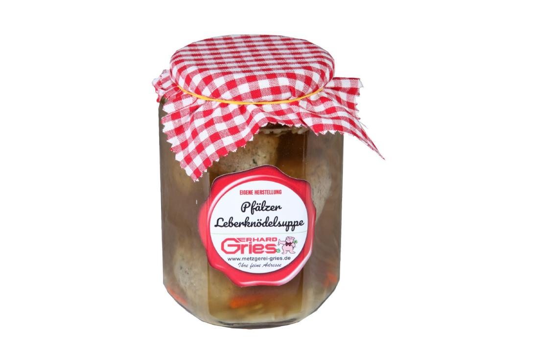 Zutaten: Rinderkraftbrühe (Trinkwasser, Rindfleisch, Sellerie, Möhren, Zwiebel, Speisesalz), Leberknödel (180g) (Schweinefleisch, Schweineleber, Brötchen (Weizenmehl, Trinkwasser, Backhefe, Backmittel (Eismalz, Malta), jodiertes Speisesalz, Eier, Zwiebel, Kochsalz, Pfeffer, Petersilie, Muskat, Majoran, Kümmel), Sellerie,Lauch, Möhren, Zucchini, Petersilie